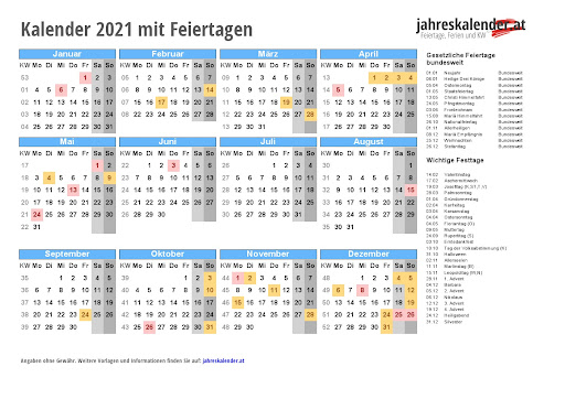 for "Kalender 2021 Mit Feiertagezum Ausdrucken Kostenlos : Kalender 2021 Österreich in Excel zum Ausdrucken"
